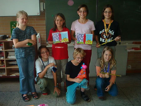 Hier die siegreichen TeilnehmerInnen eines vierten Schuljahres mit ihren Preisen.