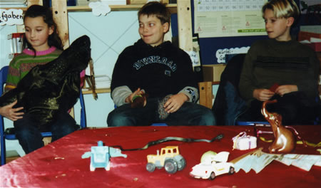 Beispiel: In einem Erzählsack befinden sich beliebige Gegenstände, die nach bestimmten Regeln einzeln herausgenommen werden können, zu denen ein gewisser kurzer Erzählstrang entwickelt wird, der vom Nachbarn weitergeführt wird, bis die Geschichte ein angemessenes Ende findet. Die Erzählergebnisse kann man als zufällig bezeichnen, was dem Geschehen eine ziemlich positive Spannung gibt.